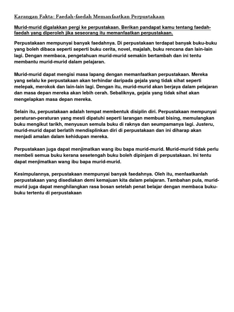 Contoh Karangan Upsr Kebaikan Perpustakan Sekolah By Bio_Giselle254 08 Jul, 2022 Post a Comment Karangan Bm Perpustakaan Sekolah Saya Pdf Faedah Mengunjungi Perpustakaan Terkini Pdf Karangan Kepentingan Perpustakaan Pdf Contoh Karangan Perpustakaan Pdf Karangan Pdf Share No comments for "Contoh Karangan Upsr Kebaikan Perpustakan Sekolah"